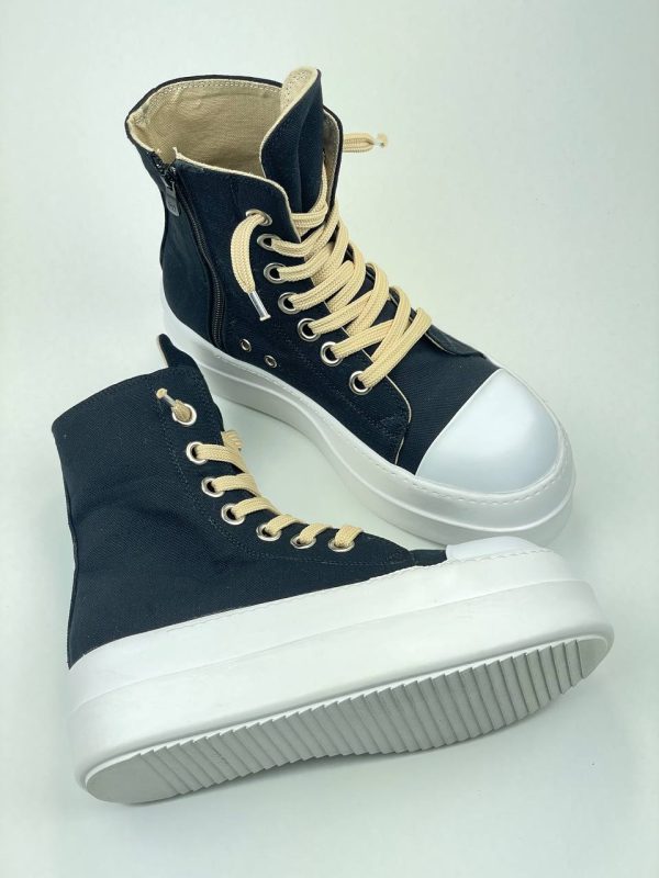 رویه این نیمبوت از پارچه جین مشکی مقاوم ساخته شده که علاوه بر زیبایی، دوام بالایی دارد و به راحتی با استایلهای مختلف ست میشود. زیره ام بی ار (M.B.R) به کار رفته در این کفش، علاوه بر انعطافپذیری عالی، مقاومت بالایی در برابر سایش و لغزش دارد که باعث راحتی بیشتر در طول روز میشود.